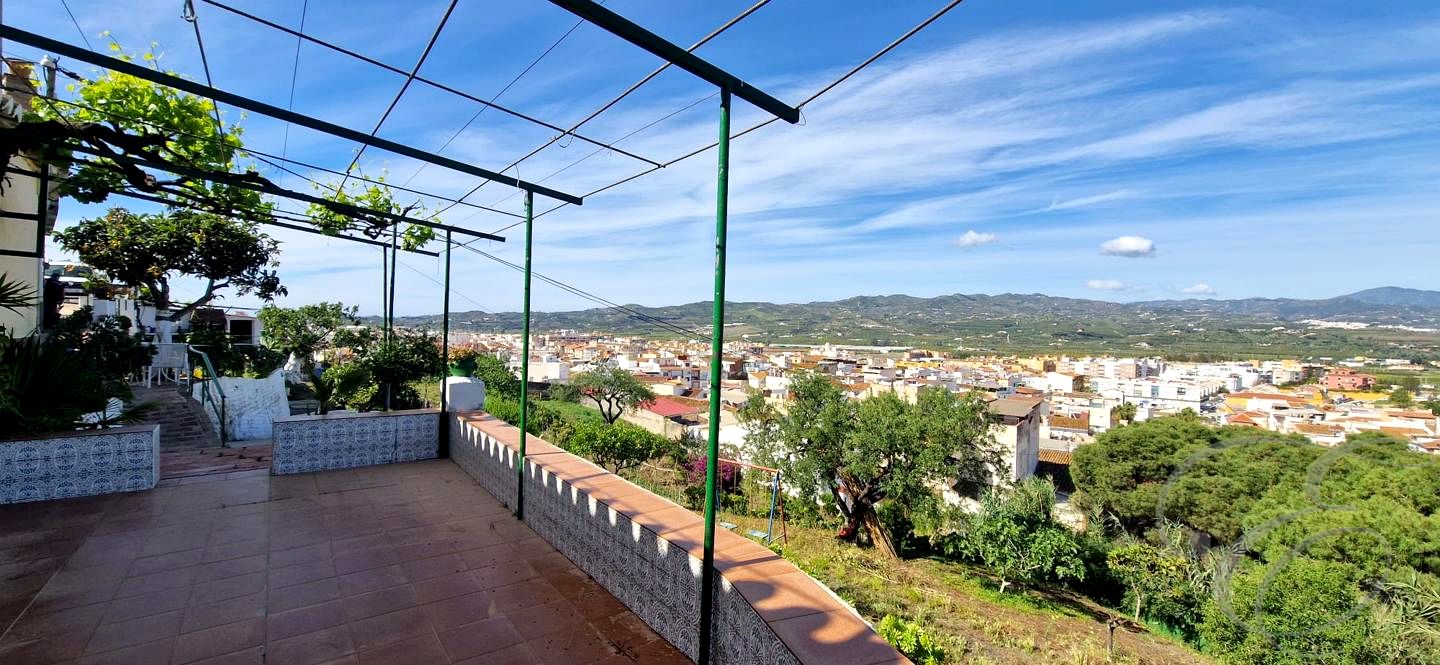 Country House. Divided into three independent areas. 4 Bedrooms. 3 Bathrooms. Garage. 40m2 Storeroom. Sensational Sea, Town and Countryside Views. Access via two streets. Walking distance into the centre of Velez Malaga.